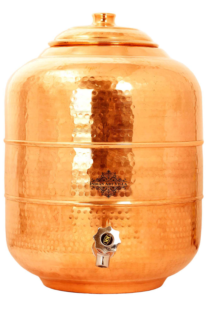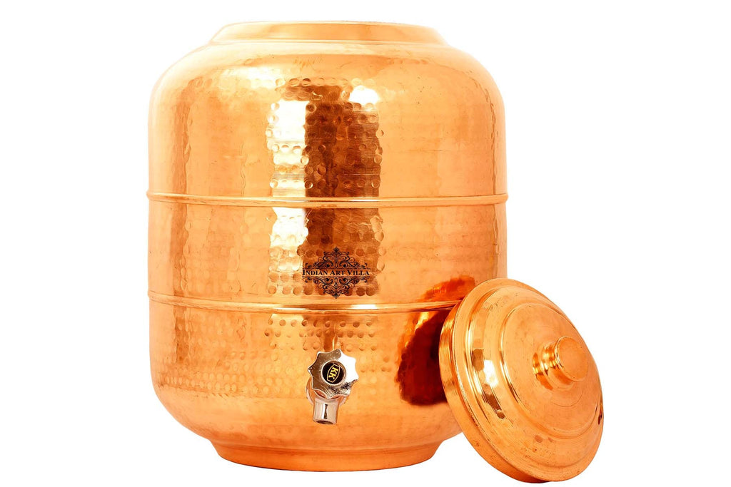 IndianArtVilla Handmade Pure Copper Water Pot with Hammered Design, Drinkware Water Tank | Dispenser | Storage Pot