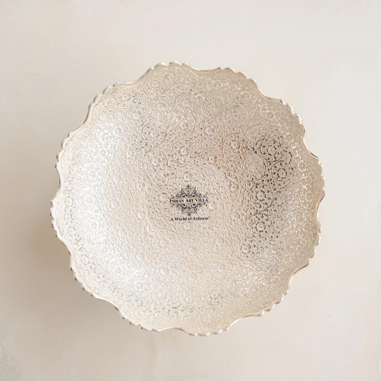 Indian Art Villa's Pure Silver Plated Designer Deep Dish Bowl, a stunning addition to your home decor and an exquisite gift choice for loved ones. This meticulously crafted bowl showcases a blend of traditional Indian design and contemporary aesthetics, perfect for enhancing any space with its timeless charm. Crafted with precision and plated with pure silver, this deep dish bowl exudes luxury and sophistication. The intricate detailing and artistic patterns bring an aura of grandeur to any setting, making it an ideal centerpiece for your dining table or living room display. Presented in a captivating red gift box, this bowl becomes an excellent choice for gifting on special occasions. Whether it's a festive celebration or a heartfelt gesture, this silver-plated bowl promises to leave a lasting impression and become a cherished keepsake for the recipient. Not just a decor piece, this versatile bowl can also be used for holding dry fruits, adding functionality to its mesmerizing beauty. Elevate your interior decor or delight someone special with the Indian Art Villa Pure Silver Plated Designer Deep Dish Bowl - a symbol of craftsmanship and refined taste.