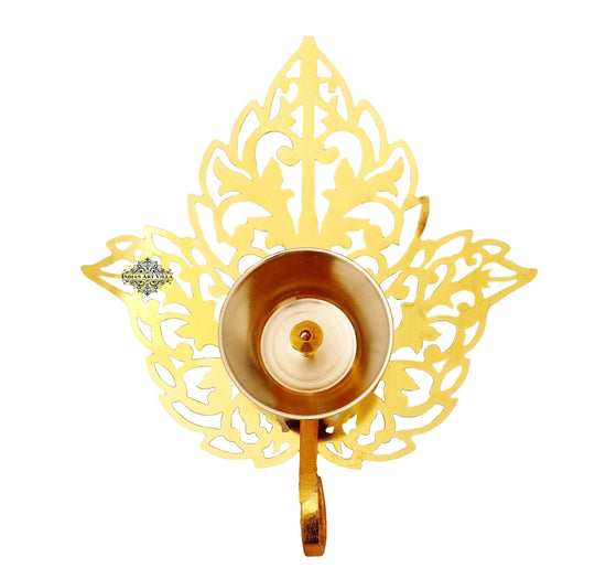 IndianArtVilla Handmade Silver & Gold Plated Leaf Design Akhand Diya
