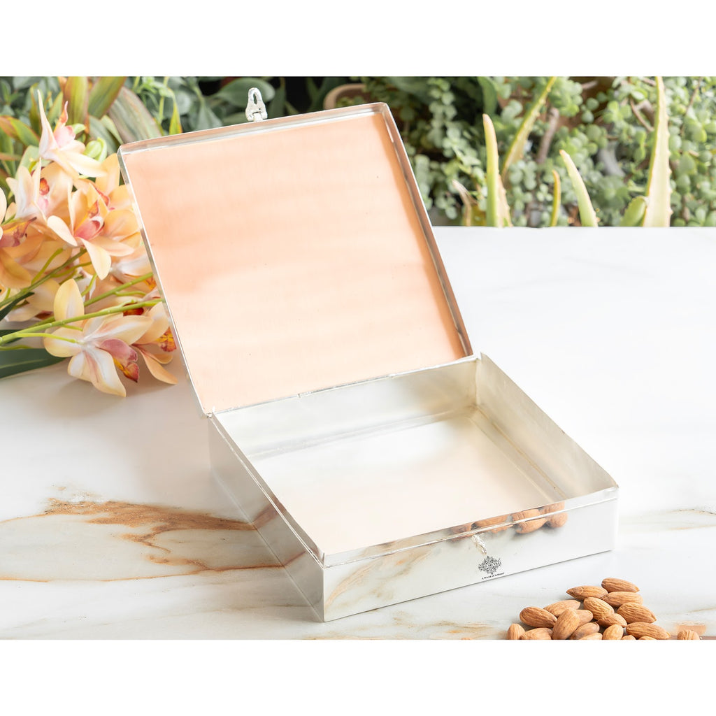 Indian Art Villa Silver Plated Copper Decorative Box with Ganesh Ji Mantra Design