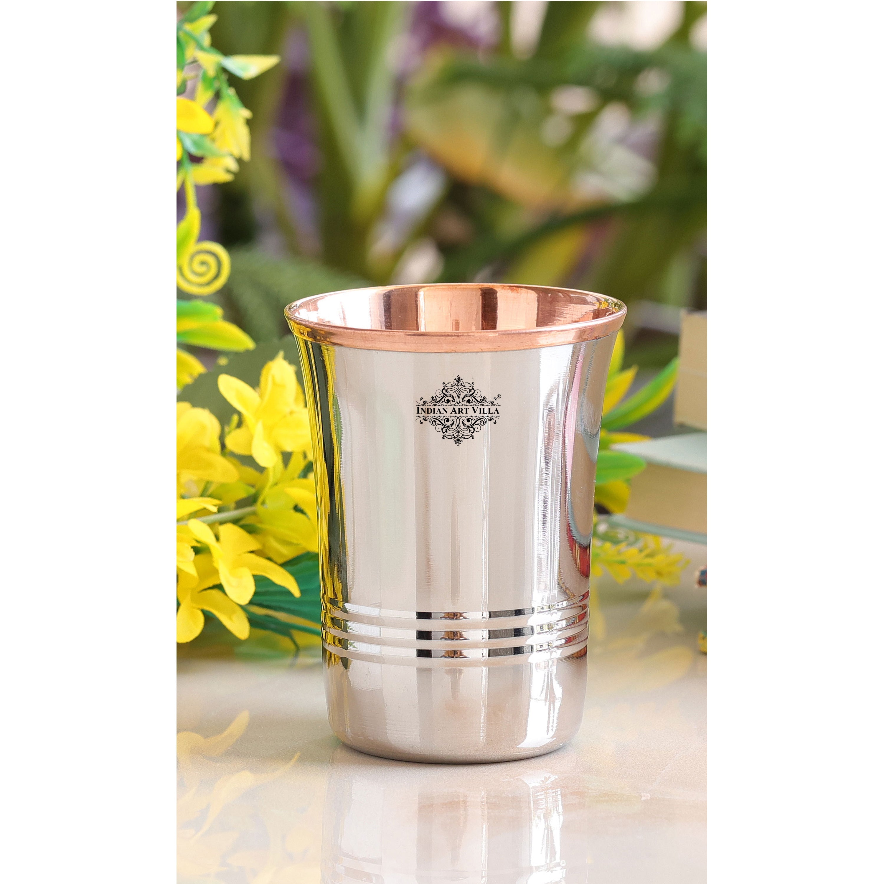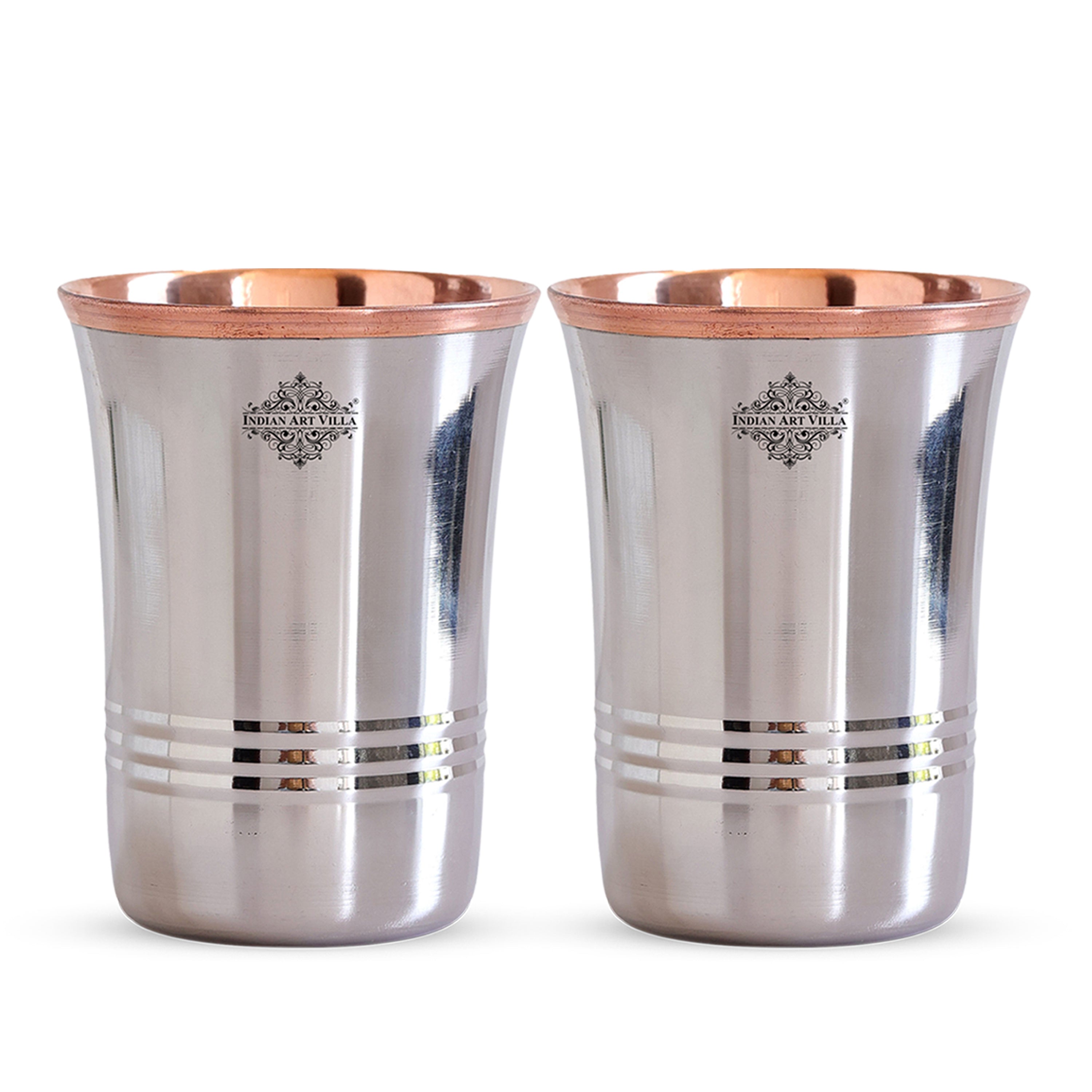 Indian Art Villa Presents Best Quality-Steel Copper Curve Shaped Glass, Tumbler Handcrafted in Luxury Design, that are used as Drinkware, Serveware, with a capacity of 250 ml. We offer the best affordable prices. Drinking the Water stored in copper utensils has innumerable health benefits. It has anti-bacterial properties that help purify water & remove toxins. It aids digestion & Weight loss. It protects us from diseases like arthritis, anemia, blood pressure, hyperthyroid, cancer and relieves us of joint pains. It has immense skin benefits too. Copper is an Antioxidant and anti-carcinogenic that prevents cell damage and slows aging. Copper is the primary element to produces melanin (pigmentation of eyes, hair, and skin) in the human body. The easiest and cheapest way to cure the copper deficiency is to drink the water stored in copper vessels. One should make it a habit of drinking water stored in copper utensils so as to keep themselves healthy. We suggest that one should drink this water stored in a copper vessel in copper Tumblers / Glasses only so that the pH level of water doesn't change when filled from the copper vessel into glasses and it stays as healthy as it was for you earlier.
