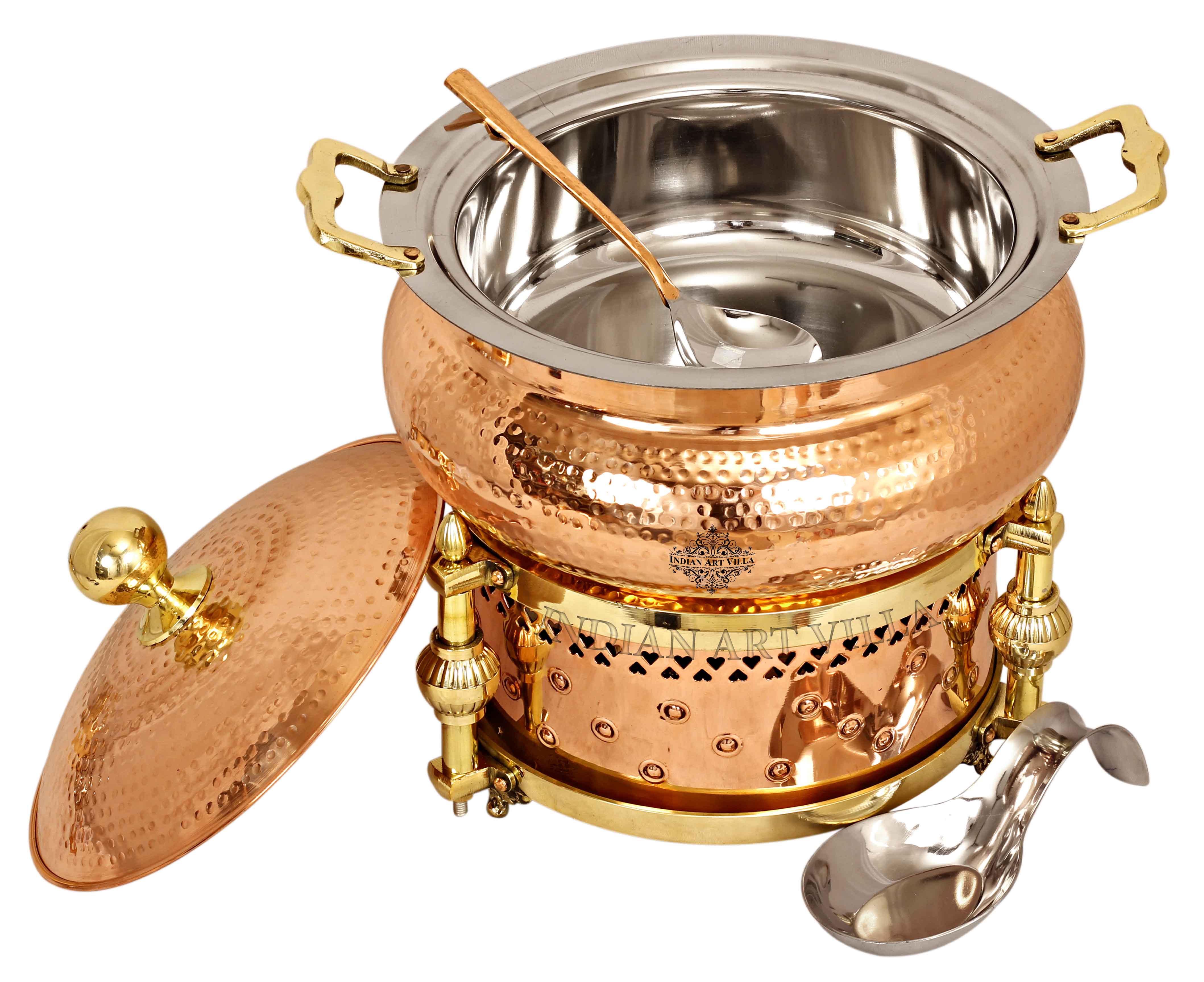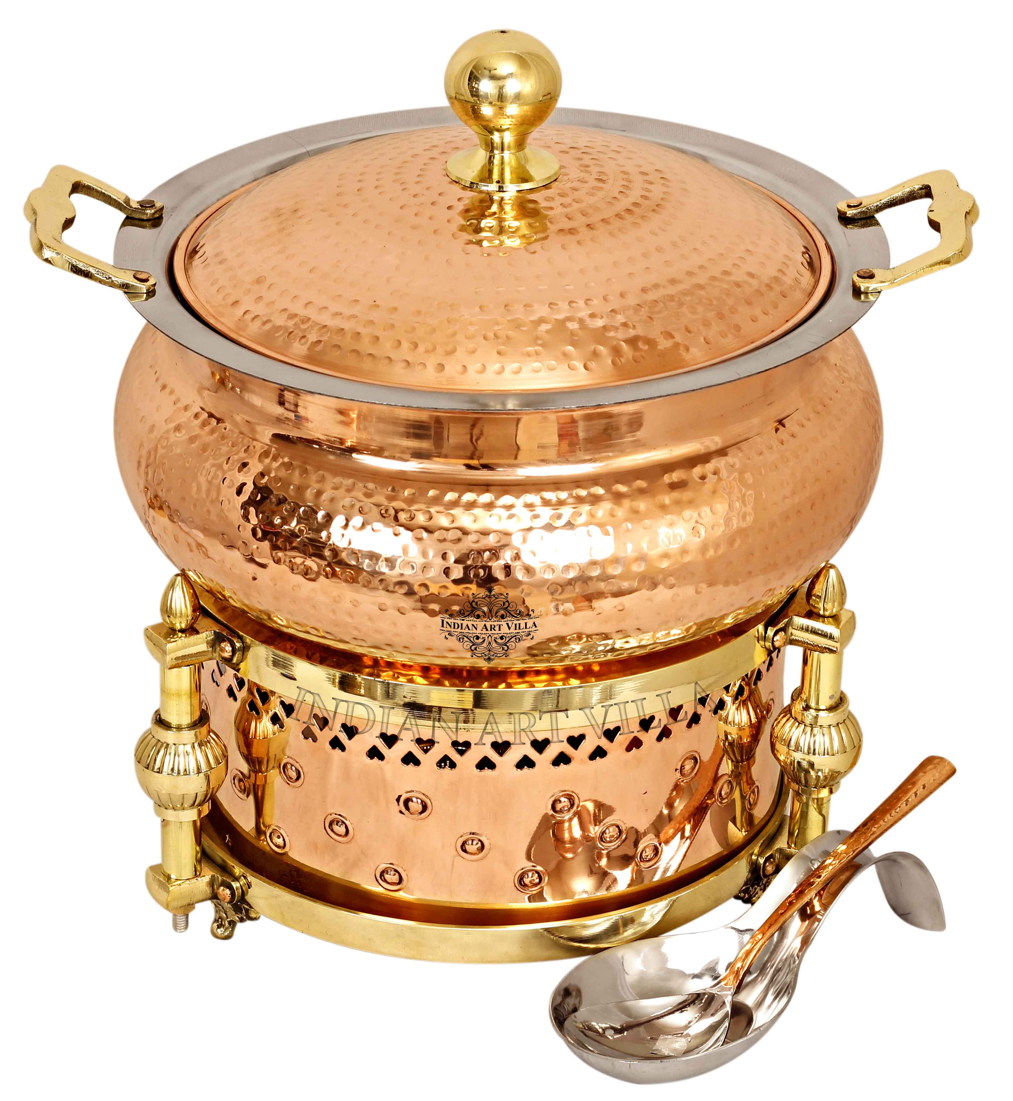 - Indian Art Villa Pure Steel Copper Hammered Design Chafing Dish with Sigdi, it was almost impossible to find one that came in a design other than the plain one. Indian Art Villa Provide You with different designs to choose from, allowing you to pick your favorite design or collect them all for those who want a variety of options.