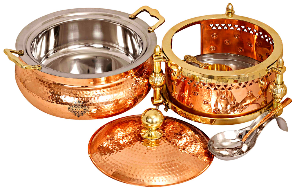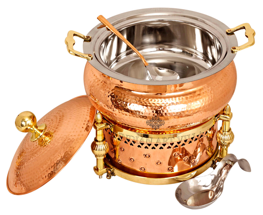 Indian Art Villa Pure Steel Copper Hammered Design Chafing Dish with Sigdi