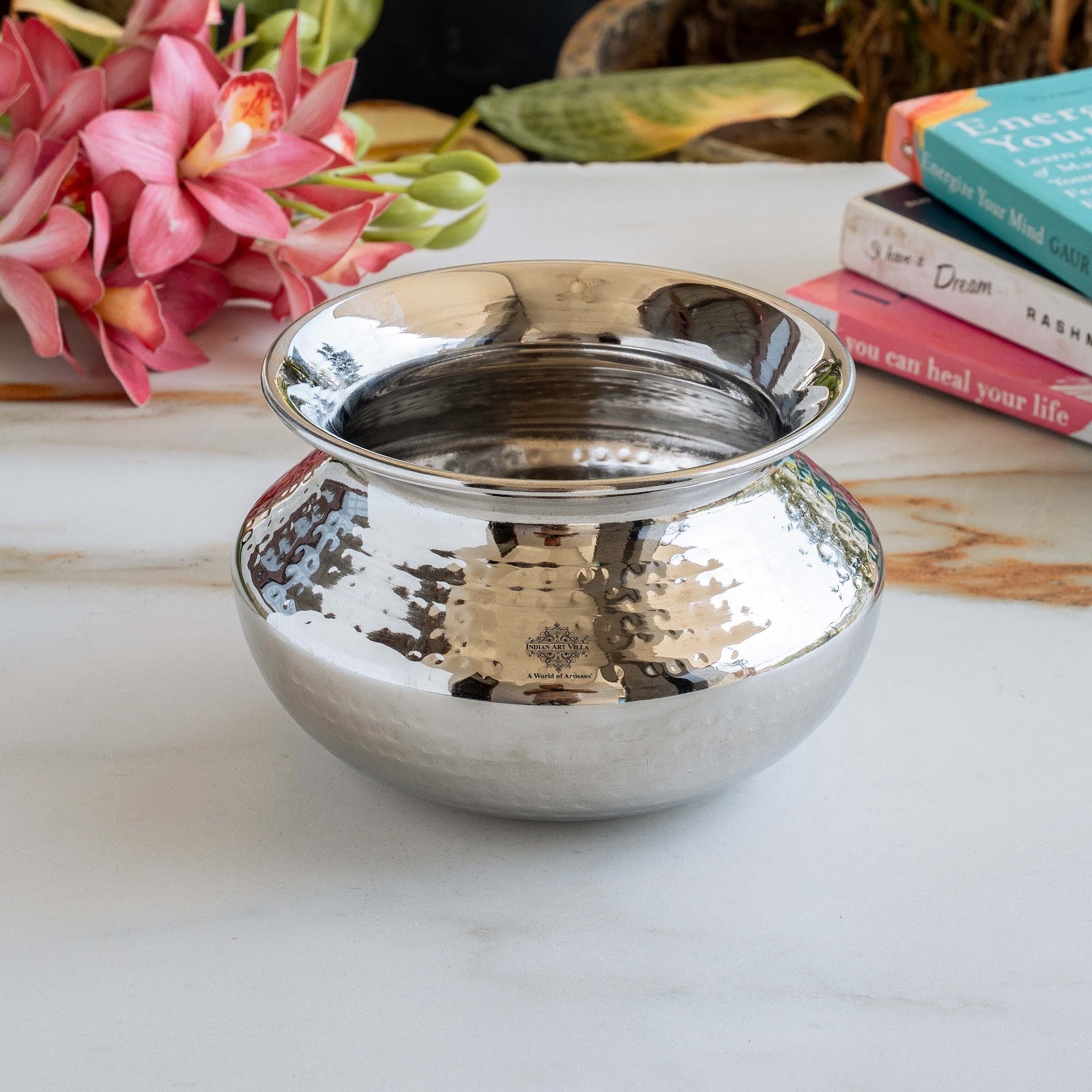 - Hammered Design: The hammered texture not only adds an aesthetic appeal to the handi but also helps in distributing heat evenly while cooking, resulting in well-cooked and flavorful dishes.