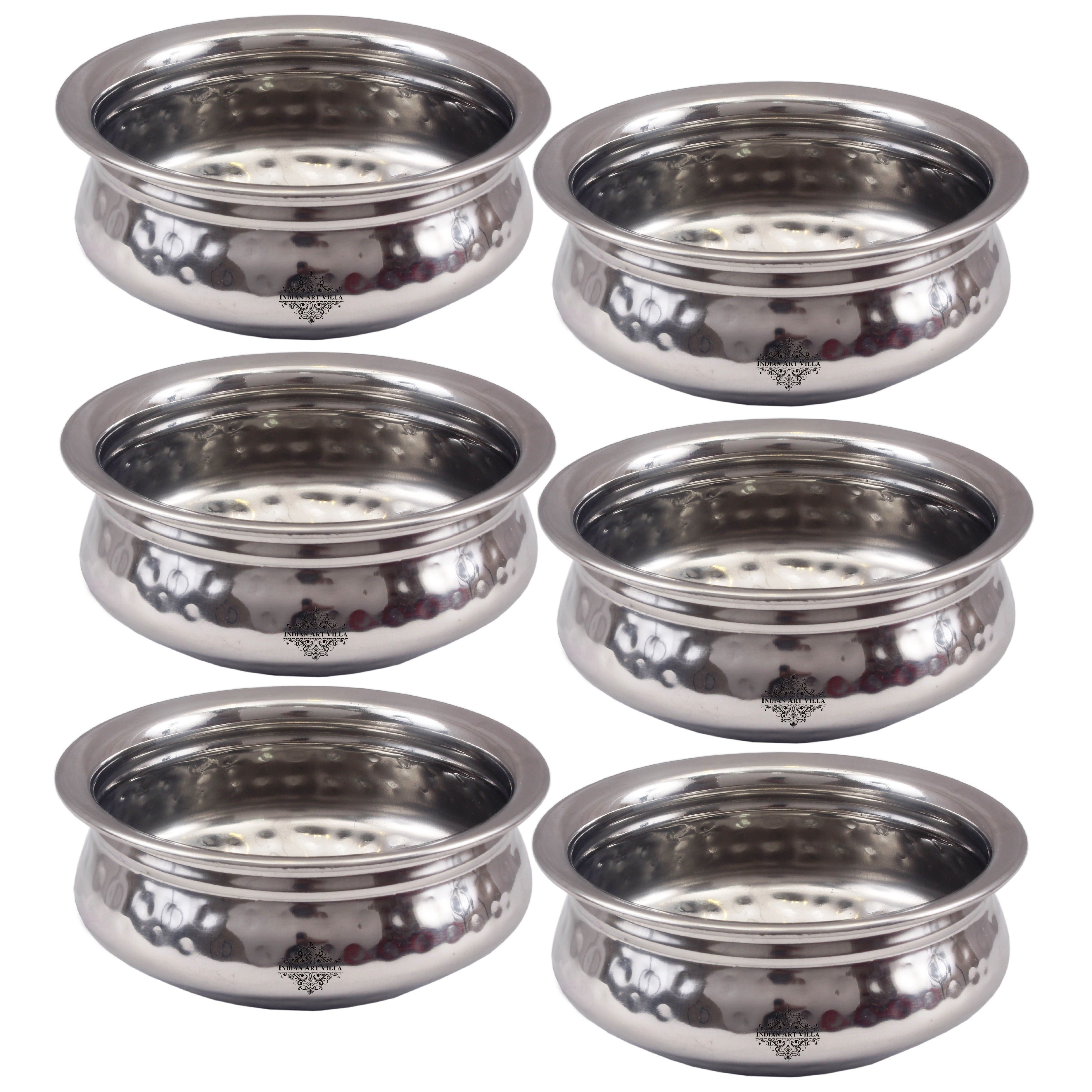 - These Pure Steel Double Side Hammered Design Handi Bowl also have Trendy looks for better ergonomics. You can add Royal Vintage Look to your Kitchen & Dining by using these Set as your Dinnerware/Serveware Purpose.