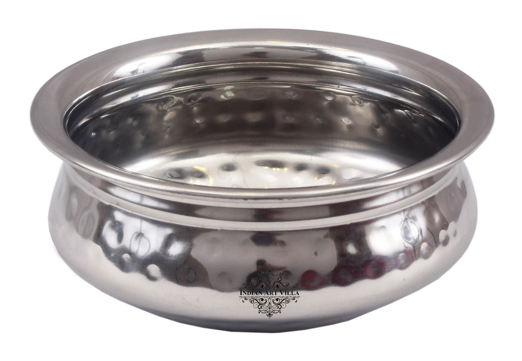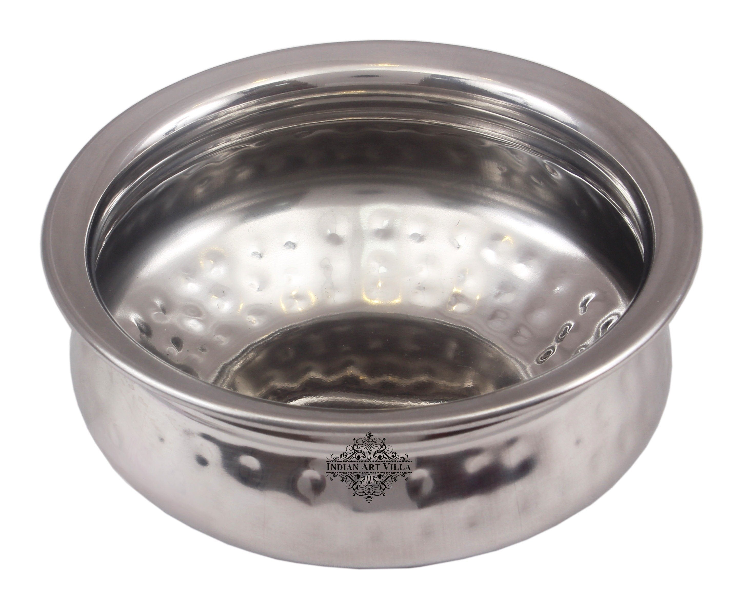 Indian Art Villa Presents Best Quality Pure Steel Double Side Hammered Design Handi Bowl. We offer the best affordable prices & Free Shipping PAN India. This Beautiful Pure Stainless Steel Double Side Hammered Design Handi Bowl can be used as a home decor item or they can also be gifted to your near and dear ones. Also, Make your home more lively and cheerful with this brilliant decor piece.If you’re looking for the finest quality Stainless Steel Double Side Hammered Design Handi Bowl, you have come to the right place! We, at Indian Art Villa, have around a decade long experience in terms of manufacturing Steel products, and have our own unique collection of Stainless Steel Handi to shop from. Stainless Steel Handi are also becoming an integral part of modern day kitchens. When talking about Serveware set, it is something which has the power to make or break the beauty of dining table. Relish Indian cuisine in Indian style! This is a set of centerpiece serve-ware for Indian food. Serve Indian dishes to your friends and family in this unique and ethnic-looking centerpiece serve ware. With this serving utensil set your Indian style dining experience goes several notches up. Serving dinner in this Stainless Steel Handi would be an unforgettable experience. IndianArtVilla Stainless Steel items have antique designs. The item is highly durable, elegant, and a wonderful addition to your Home Decor.